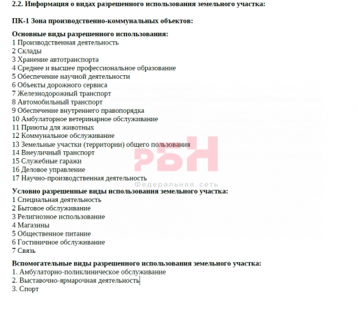 - земельный участок расположен в территориальной зоне - ПК-1, из основных видов разрешенного использования: Производственная деятельность и Склады