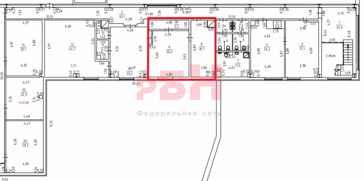 Предлагается в аренду офисное помещение с мокрой точкой общей площадью 50.2 кв.м. в Академическом районе