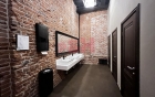 -прекрасный лофт (пол - керамогранит, стены - красный кирпич, потолок - окрашен);