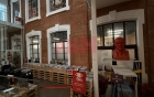 -офисный лофт: пол - керамогранит, стены - красный кирпич, потолок - окрашен;