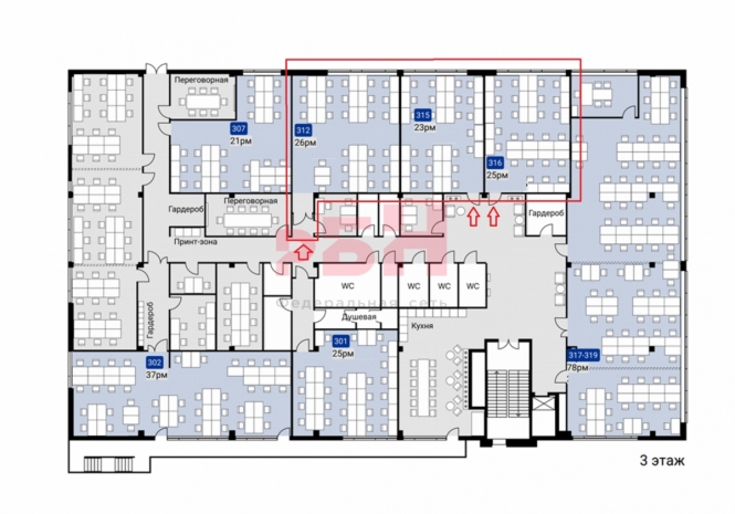 Офис А-класса на 74 человека.