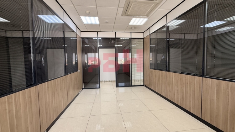 -отделка офиса: пол – плитка керамогранит, стены – обои под покраску с антивандальным покрытием, потолок навесной «Armstrong», окна – «теплый алюминий»;