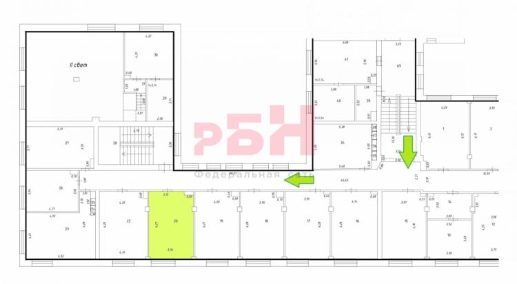 - офисное помещение общей площадью 24,6 кв.м на 3 этаже в 4-этажном офисном здании в центре Екатеринбурга на пересечении улиц Белинского и Карла Маркса;