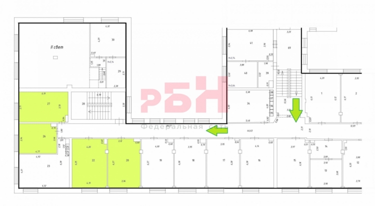 - состоит из 4-х отдельных кабинетов, расположенных рядом: 18,6 кв.м, 22,7 кв.м, 24,6 кв.м, 25,6 кв.м;