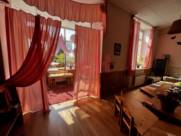-общая площадь зала 204,9 м2 (на данный момент разделено перегородками, можно объединить)